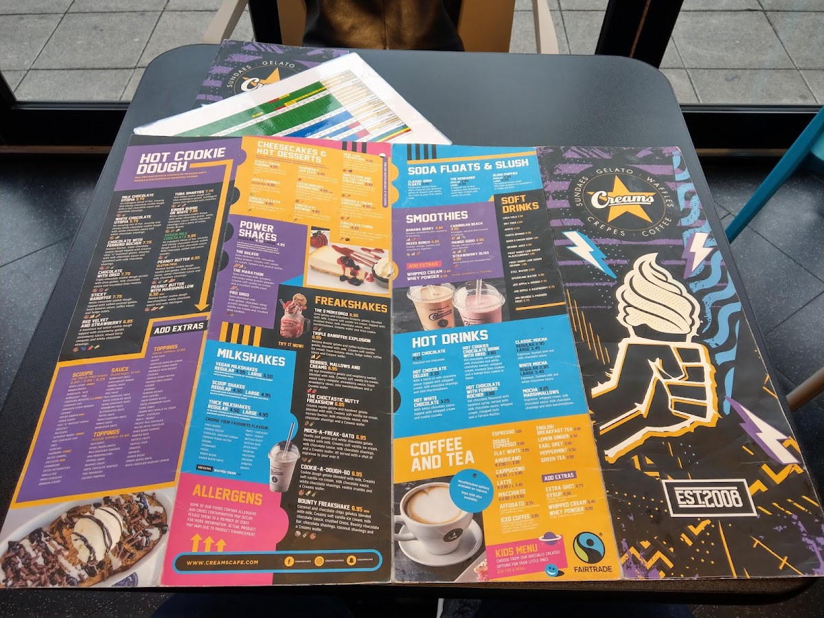 Welcome to Creams Cafe, a delightful dessert haven located in the heart of London at 60 Chase Side. This charming cafe is celebrated for its wide selection of ice creams, including unique flavors like Pink Bubble Gum and Vanilla, and scrumptious waffles that leave customers raving.